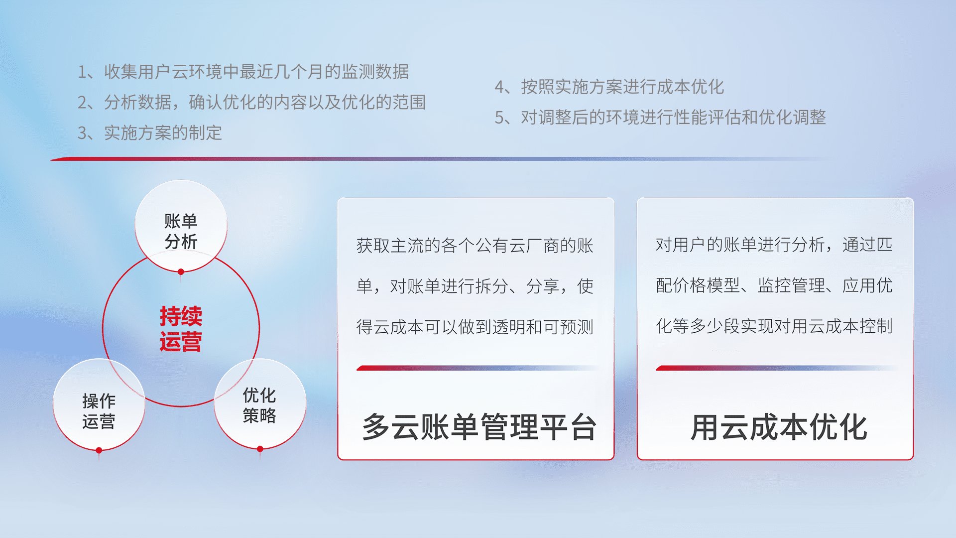 运用智能化工具分析云资源,,提供日常费用可视化工具,,,,自动账单拆分,,成本优化云上费用,,,降本增效。。